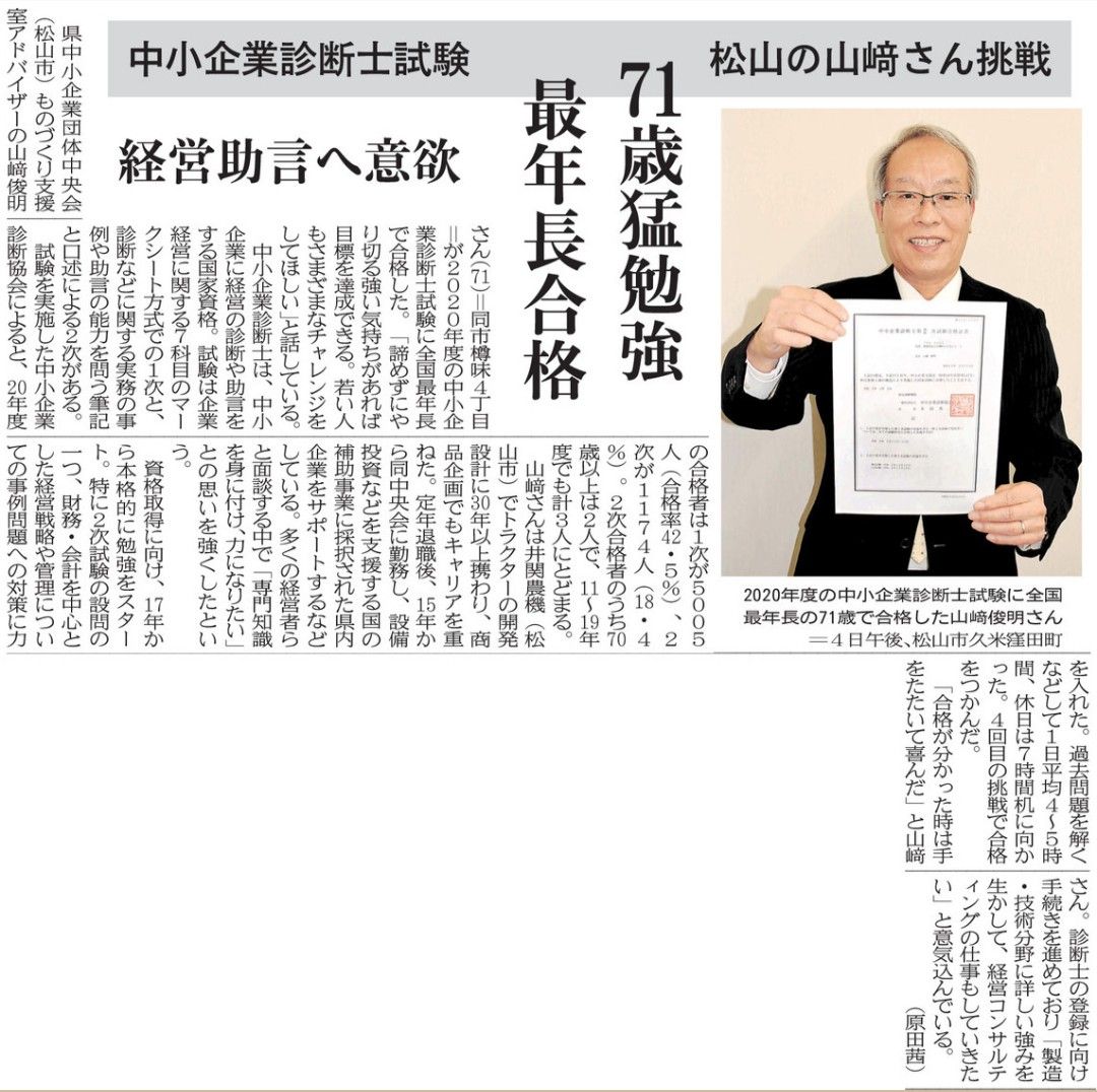 約40年間のメーカーでの実務経験後に定年退職し、2020年度の中小企業診断士試験に全国最年長合格(71歳)しました(※)。「中小企業のお役に立ちたい」との強い思いで頑張りました。このことを忘れずご支援させていただきますので、経営に関する悩み事・些細な事でも結構ですのでお気軽にお申しつけください。